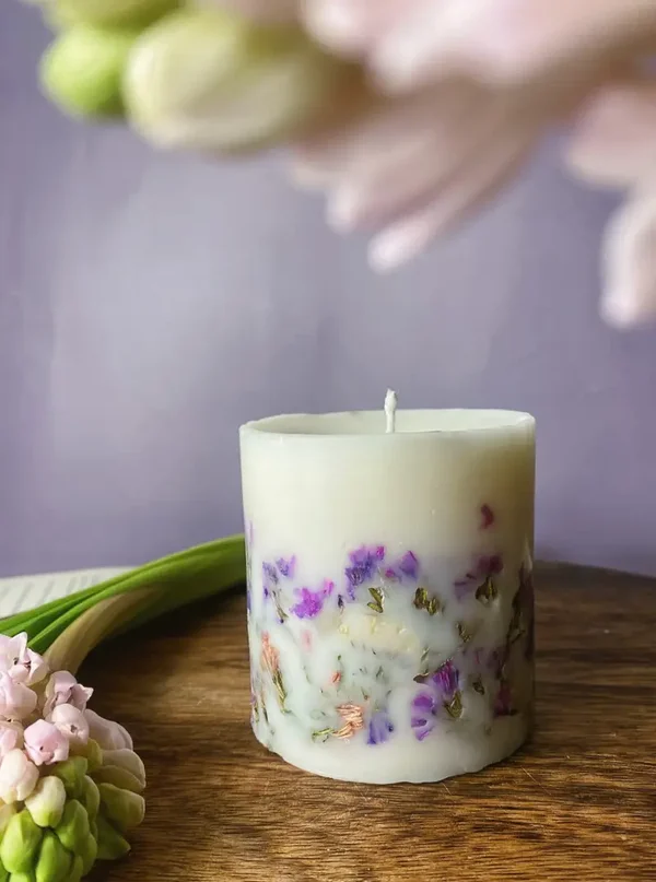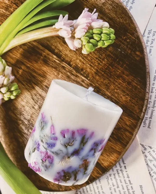 Lavender & Wildflower Botanical Candle – Handcrafted Soy Wax Pillar | Dried Flower Candle Gift with Natural Packaging