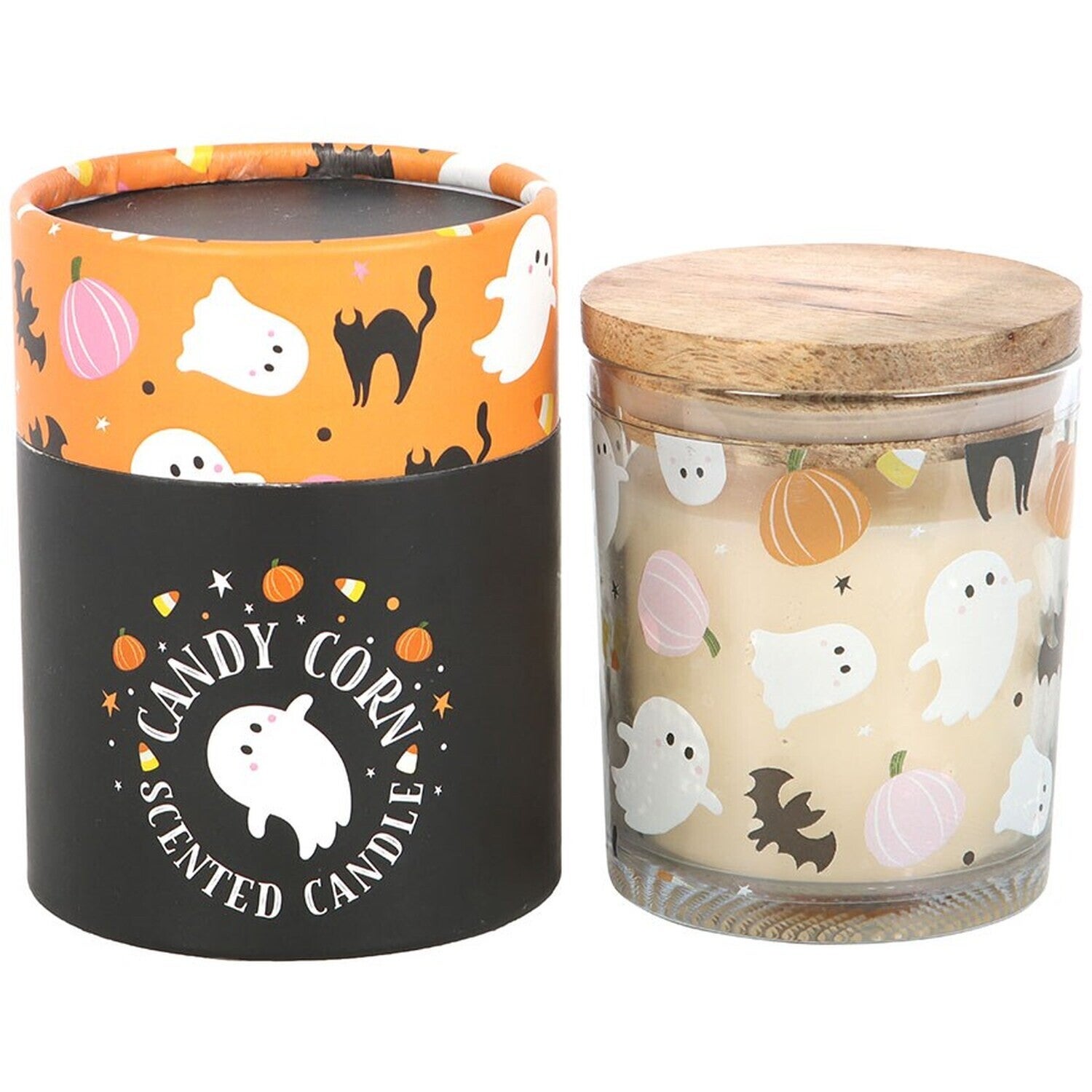 Candy Corn Scented Candle – Halloween Edition with Ghost & Pumpkin Design – Sweet Autumn Fragrance