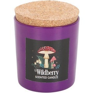 Wildberry Scented Candle – Purple Glass Jar with Cork Lid & Mushroom Gift Box – Fruity Forest Fragrance