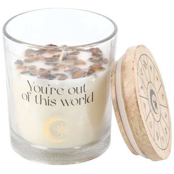 You're Out of This World – Vanilla Stardust Scented Candle with Tiger's Eye Crystals – Celestial Gift Candle