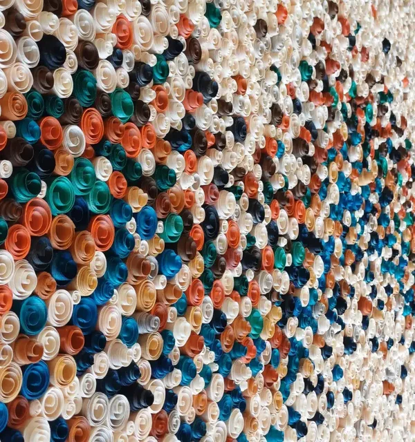 Bring nature’s texture into your interior with this stunning handcrafted mosaic made entirely from rolled wood shavings, dyed and arranged to create a vibrant, tactile visual effect. This artwork is a masterclass in patience and precision, showcasing the transformation of raw wood into a highly detailed 3D wall piece using sustainable materials.