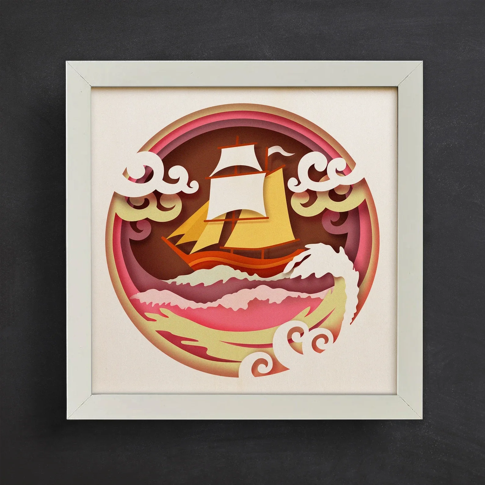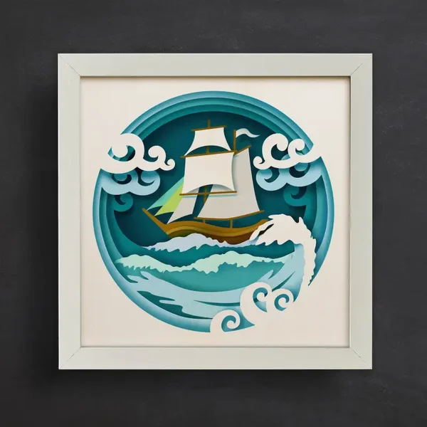 Sailing the Storm is a captivating nautical artwork that captures the timeless spirit of adventure on the high seas. This piece features a majestic tall ship battling through rolling waves beneath swirling clouds, all rendered in a layered cut-out style that adds depth, dimension, and movement. Shades of deep navy, ocean blue, and soft cream create a striking contrast, while the circular composition draws the viewer’s eye into the heart of the scene. Perfect for coastal homes, nautical-themed interiors, or anyone with a love of maritime history, Sailing the Storm evokes both the power of nature and the courage of those who navigate it. Whether displayed in a living room, study, or office, this framed print serves as a reminder of resilience, exploration, and the beauty of the open sea. It’s an ideal gift for sailors, sea lovers, or art collectors seeking a bold yet elegant maritime statement piece.
