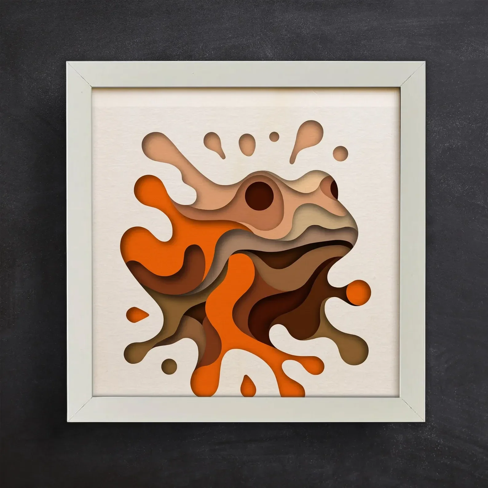 Splash Frog is a bold and playful piece of modern art that bursts with colour, movement, and creativity. This layered cut-out design depicts a stylised frog emerging from a splash of water, blending organic shapes with an abstract aesthetic. Shades of vibrant green, turquoise, yellow, and earthy brown flow together in smooth, fluid forms, giving the artwork both depth and energy. The splatter-like shapes around the frog enhance its sense of motion, making it appear as if it has just leapt from the water. Perfect for nature lovers, amphibian enthusiasts, or anyone who enjoys quirky and dynamic décor, Splash Frog adds a refreshing pop of personality to any room. Whether displayed in a living room, creative space, or child’s bedroom, this framed print captures the lively essence of the frog while doubling as a striking abstract art piece.