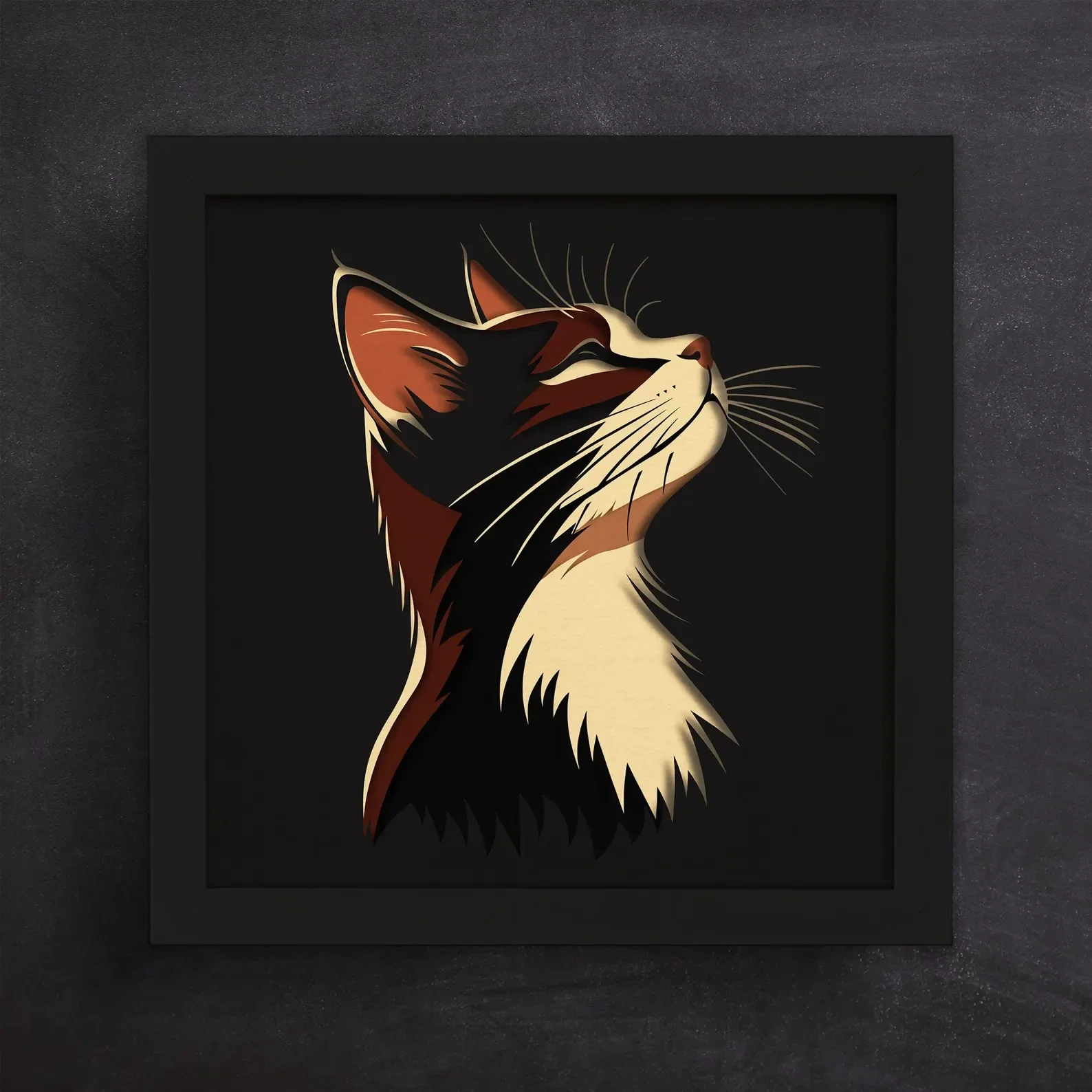 cat wall art, feline silhouette art, minimalist cat portrait, modern cat decor, abstract cat artwork, cat lover gift, contemporary animal wall art, pet portrait illustration, stylish cat print, bold color cat art, red black cream art, framed cat silhouette, cat wall decor gift, graphic feline illustration, cat profile art This striking Elegant Cat Silhouette Wall Art captures the grace, mystery, and quiet confidence of a feline in a modern, minimalist style. Featuring a sleek profile of a cat in bold black, deep red, and warm cream tones, the artwork blends contemporary design with timeless elegance. Every sharp edge and soft curve is carefully balanced, creating a piece that is both powerful and serene. The cat’s upward gaze evokes curiosity and wonder, making it an inspiring focal point for any room. Printed on high-quality materials and framed in a sleek black border, this artwork complements modern interiors, loft spaces, and cosy corners alike. Whether you’re a dedicated cat lover, an art enthusiast, or searching for a sophisticated gift, this piece delivers style, character, and charm in equal measure. It’s not just wall decor—it’s a statement of personality and artistic taste.