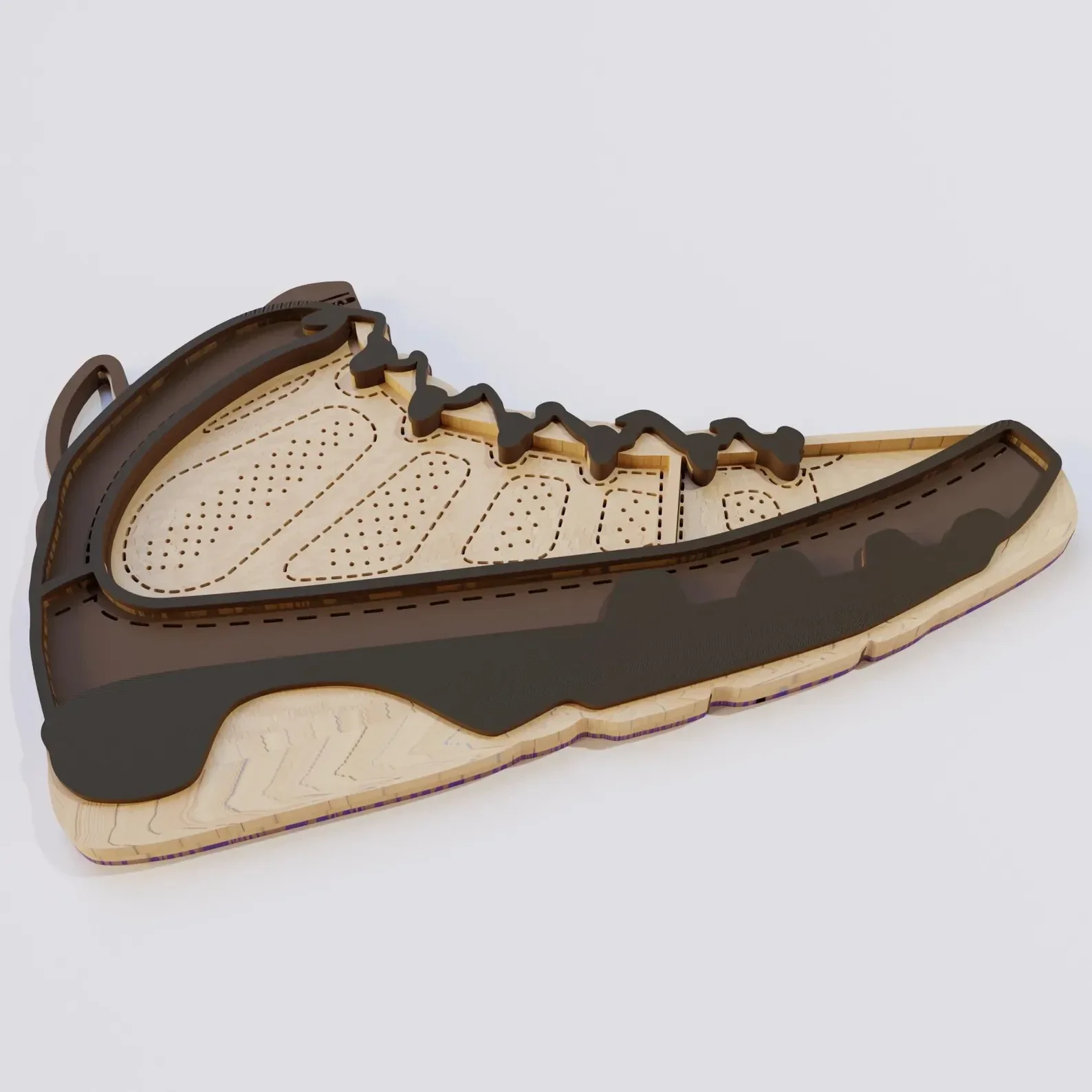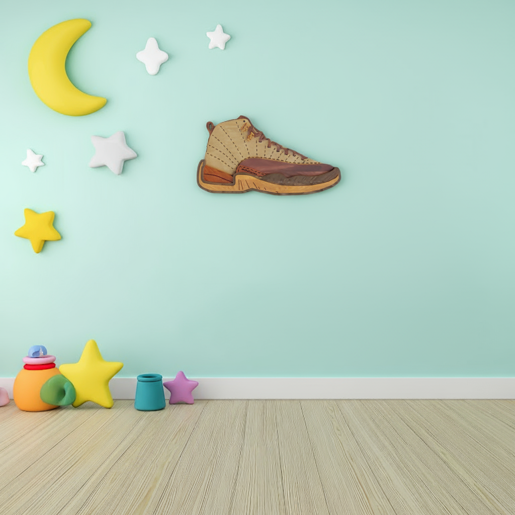 wooden Air Jordan 9 art, sneaker wall decor, Jordan 9 silhouette artwork, 3D sneaker cut-out, layered sneaker wall art, basketball shoe artwork, sneaker culture wall art, wooden sneaker silhouette, Jordan sneaker wall print, sneakerhead gift, sneaker display art, retro Jordan sneaker artwork, wooden sneaker model, sneaker collectors gift, Jordan sneaker decor, high-top sneaker wall art, retro basketball sneaker art, sneaker inspired wall print, sports sneaker wall piece, modern sneaker wall artwork Step into sneaker history with this Wooden Air Jordan 9 Wall Art. Featuring the iconic Jordan 9 silhouette, this precision-crafted 3D layered wooden cut-out highlights every detail—from its perforated panels and sculpted midsole to the bold high-top design that defined a generation of basketball sneakers. Crafted in natural wood tones with contrasting dark overlays, this artwork blends retro sneaker heritage with modern craftsmanship. Perfect for sneakerheads, basketball fans, and collectors, it makes an impressive statement in sneaker rooms, game rooms, offices, or home decor. The Air Jordan 9 remains a legendary model in the Jordan legacy, and this piece celebrates that legacy in a stylish, collectible form. Whether you’re looking for a standout wall display or a unique gift for a sneaker enthusiast, this wooden Jordan 9 artwork delivers character, depth, and sneaker culture appeal.