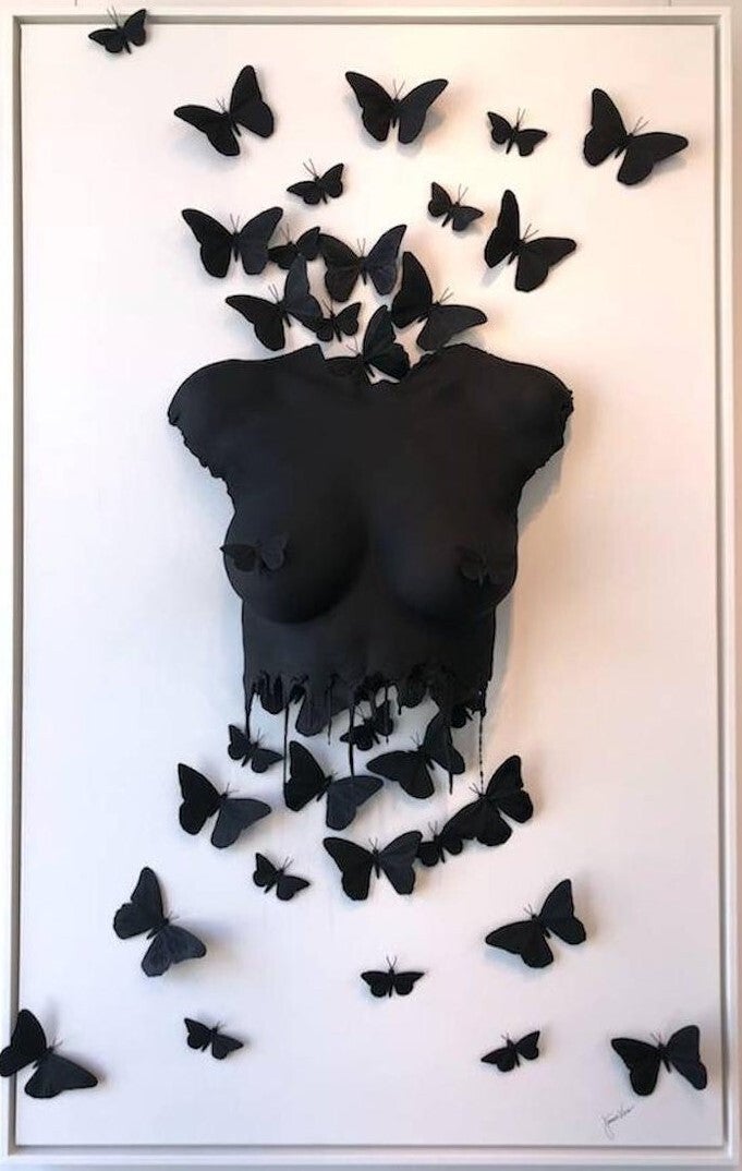 Eclipse of the Soul” is a breathtaking sculptural wall art piece that blends surrealism, elegance, and symbolism. Featuring a black female torso surrounded by delicate black butterflies in flight, this artwork represents transformation, freedom, and the beauty found within shadows. The dripping lower torso adds a raw, contemporary edge, symbolizing both fragility and resilience, while the butterflies evoke themes of rebirth and liberation. Perfect for modern interiors, galleries, or statement spaces, this piece captivates with its bold contrast of deep black against a clean white background. Ideal for collectors of modern sculpture, lovers of symbolic art, or anyone seeking a striking conversation piece, “Eclipse of the Soul” offers a timeless blend of mystery and sophistication. Crafted with precision and artistic depth, it is more than decor – it is a story of transformation captured in sculptural form.