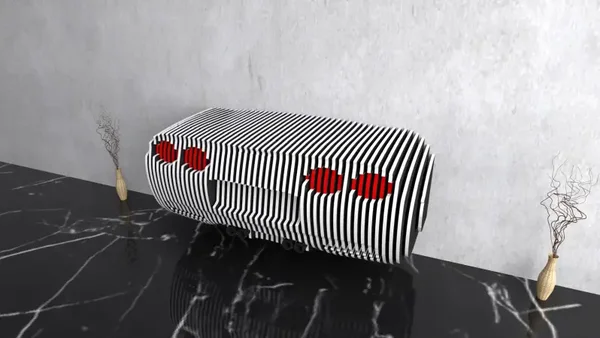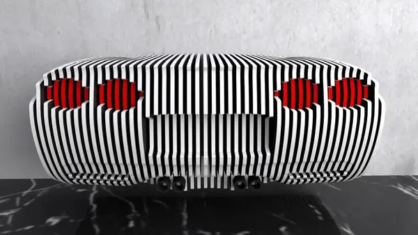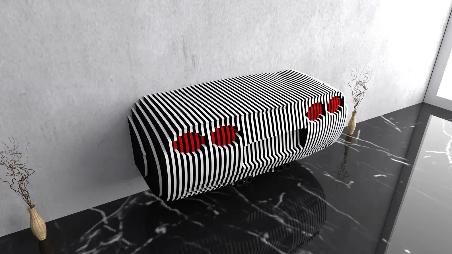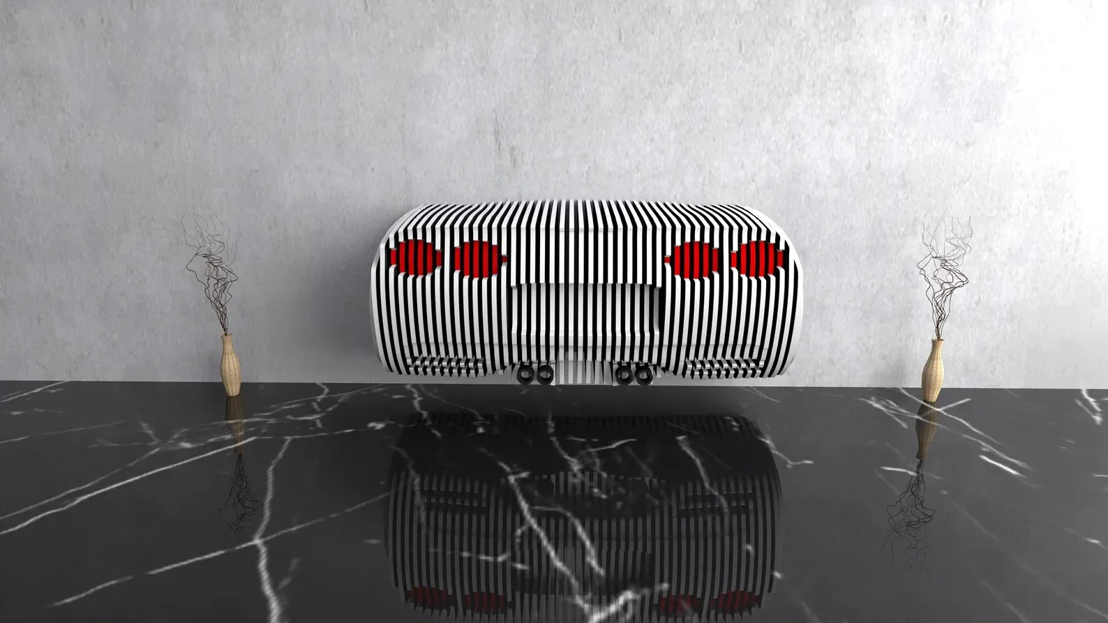Afterburn Stripes from the Creativity Wall Arts Collection is a bold and futuristic sculptural wall artwork that celebrates speed, power, and precision. This piece captures the rear view of a high-performance sports car, formed entirely from layered black-and-white vertical contours with glowing red taillight elements piercing through the stripes. The striking visual contrast creates a powerful illusion of depth and motion, as if the car is blasting off into the distance. The flowing contour layers bend around its sculpted body, blending optical illusion with mechanical artistry. Ideal for luxury interiors, automotive showrooms, creative studios, or bold contemporary spaces, this piece embodies adrenaline and innovation. The crisp monochrome pattern enhances architectural spaces, while the vivid red accents inject energy and focus. Perfect for collectors, design lovers, or car enthusiasts seeking a dramatic centrepiece, Afterburn Stripes transforms any wall into a kinetic celebration of movement and modern engineering design. Note: Each piece is individually crafted to order. Please allow 21 days for delivery to ensure perfection and exceptional quality.