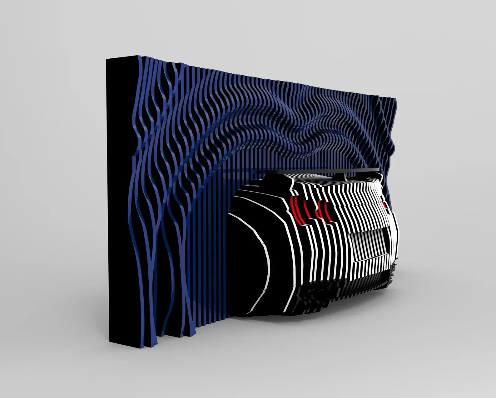 Ignite your space with the electrifying presence of Golden Velocity, a stunning 3D wall sculpture that captures the raw energy of a supercar in motion. Precision-cut layered panels form the bold rear view of a golden performance car emerging from a field of flowing black contours, while glowing red taillights accentuate its striking silhouette. The rhythmic interplay of black and gold creates a dramatic optical illusion, making the car appear as though it’s surging forward through space. Perfect for luxury showrooms, modern living spaces, creative studios, or collectors who crave powerful design statements, this piece blends the spirit of speed with architectural elegance. Golden Velocity is more than art — it’s a celebration of performance, innovation, and refined taste.