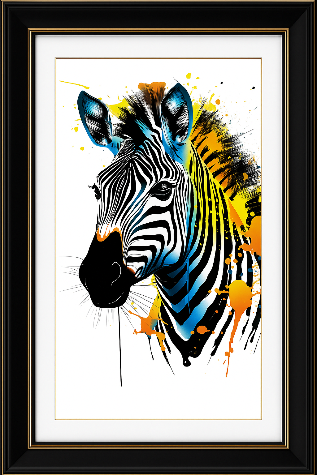 Zebra Burst is a bold fusion of natural beauty and contemporary design, transforming the iconic black-and-white stripes of a zebra into a dynamic explosion of color. Vibrant splashes of orange, yellow, and electric blue break free from the clean background, adding energy and movement to the composition. This striking piece is both modern and timeless, symbolizing individuality and the vibrancy of life. Perfect for contemporary interiors, art collectors, or anyone seeking a powerful statement piece, Zebra Burst balances the elegance of wildlife portraiture with the excitement of abstract expression, making it a centerpiece that sparks conversation and admiration.