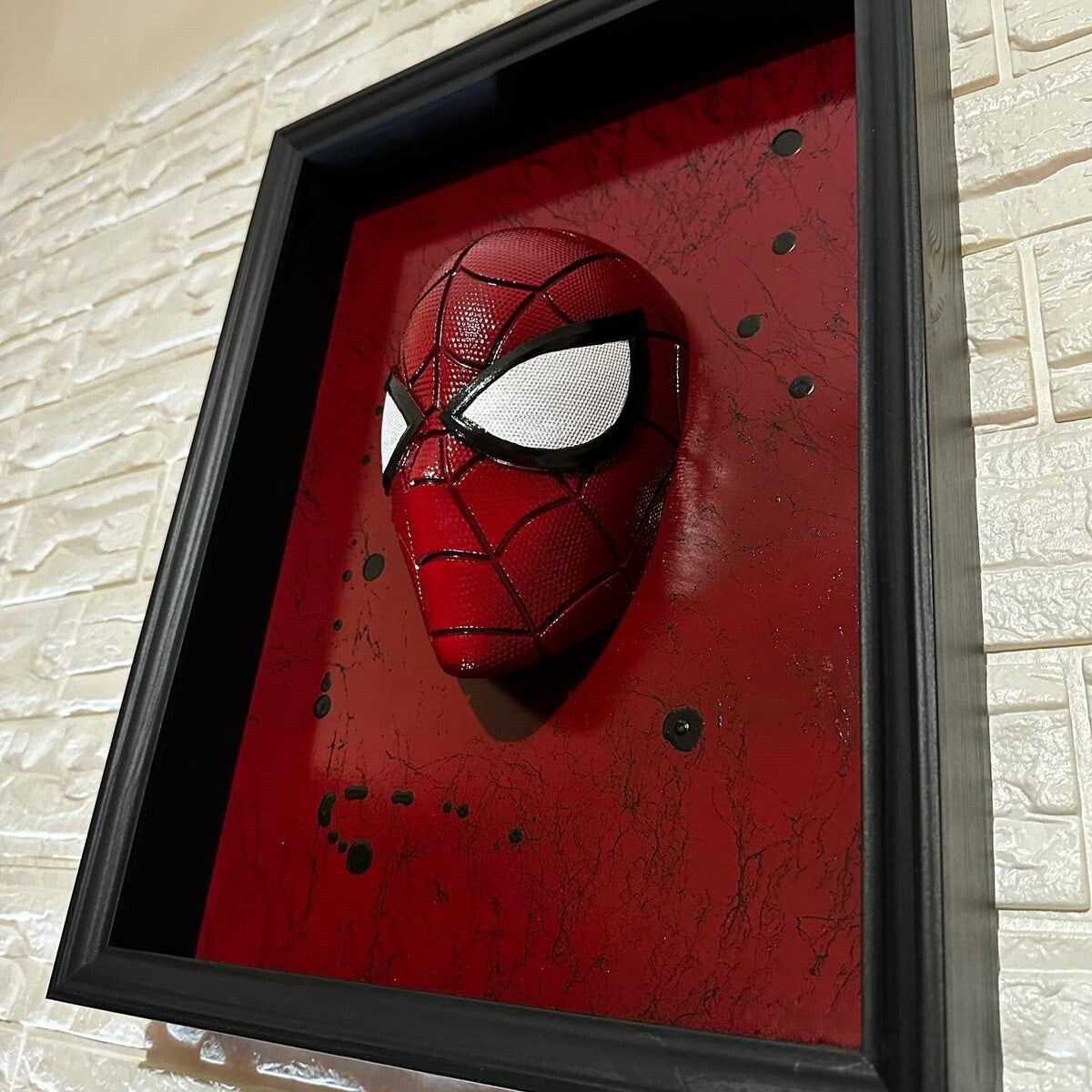 Web of Emergence is a bold sculptural wall artwork that transforms Spider-Man’s iconic visage into a striking three-dimensional experience. The glossy red mask, detailed with black webbing and piercing white eyes, projects outward from a crimson marbled backdrop, breaking the traditional boundary of framed art. The effect is dramatic — as if Spider-Man is stepping directly into the viewer’s space. This artwork captures the essence of Spider-Man’s duality: his vibrant, youthful energy set against the darker undercurrents of struggle and resilience. By merging pop culture mythology with contemporary wall sculpture, Web of Emergence transcends fan art, positioning itself as a conceptual and decorative statement. Ideal for modern interiors, collectors, and superhero enthusiasts alike, this piece injects a dynamic, cinematic presence into any room. More than wall decor, Web of Emergence is a conversation piece that brings the Spider-Man legend to life.
