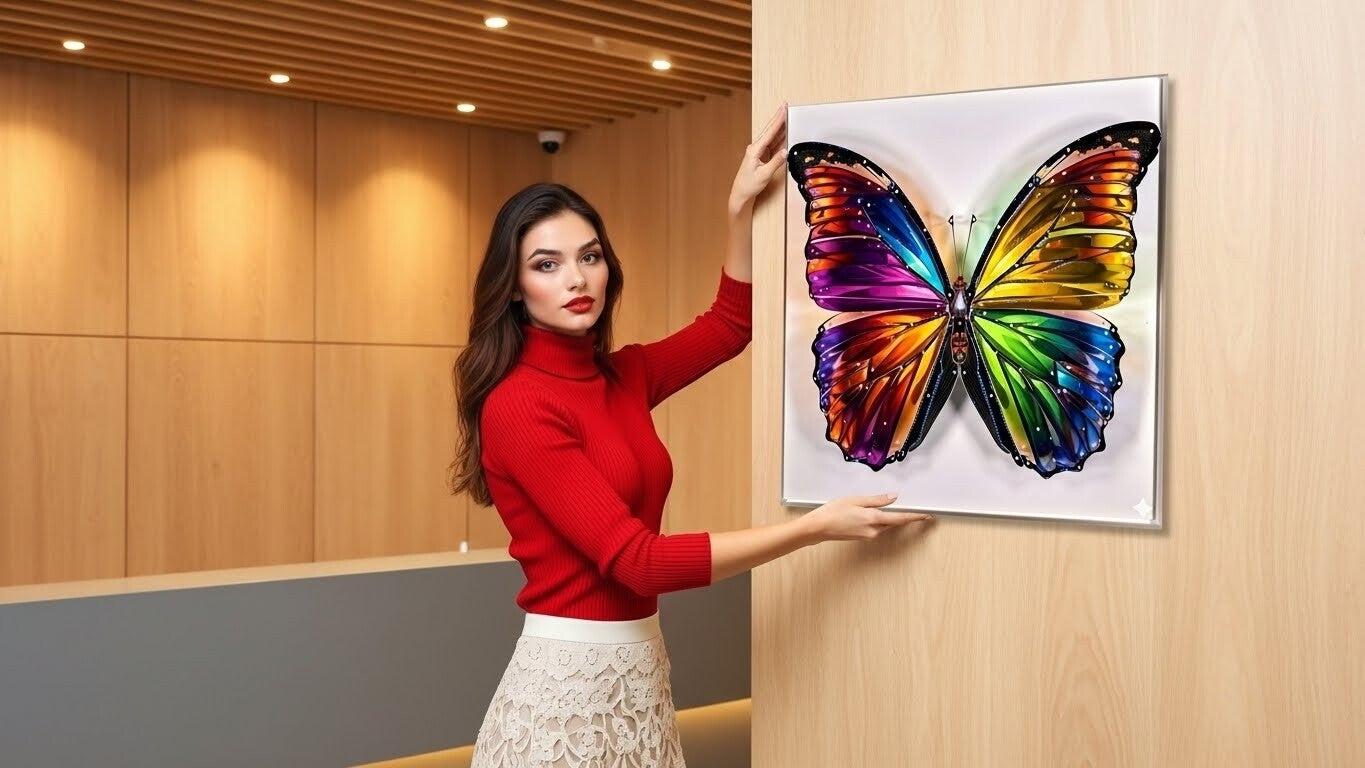 This captivating butterfly artwork is engineered from seven precision-cut layers of acrylic, composite materials, and reflective finishes, producing a powerful three-dimensional presence. Its radiant spectrum—ranging from deep violets to vivid greens and luminous golds—creates a dramatic visual shift as light dances across each wing. Detailed metallic accents and micro-layered contours give the piece an elegant yet futuristic character. Every element has been crafted to express transformation, strength, and artistic innovation. The artwork is hand-finished, carries the artist’s authentic signature, and arrives with a Certificate of Authenticity. A bold centrepiece designed for collectors, luxury interiors, and curated spaces seeking a vibrant, museum-quality statement."Please note: This art piece requires 45 days for completion and delivery."