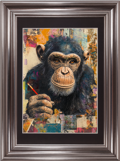 Limited edition art, signed artwork, chimpanzee painting, monkey portrait, collectible wall art, exclusive wildlife art, modern chimp painting, contemporary signed artwork, abstract animal portrait, collectible art piece, wildlife decor, colorful monkey painting, artist signed print, framed chimp artwork, abstract modern wildlife, rare collectible painting, chimpanzee wall decor, statement art piece, limited signed edition, unique animal artwork “The Thoughtful Chimp” is a limited edition, artist-signed artwork that seamlessly blends realism with modern abstract expression. This striking piece captures the depth and intelligence of a chimpanzee, presented with meticulous detail and emotional resonance. Its expressive gaze is set against a bold, textured abstract background, combining vibrant colors and layered patterns that radiate both energy and sophistication. Each edition is personally signed by the artist, guaranteeing authenticity and enhancing its value as a rare collectible. The artwork is beautifully framed, giving it a polished and gallery-ready finish that makes it a perfect centrepiece for any space—be it a modern home, office, or curated art collection. As part of a strictly limited edition run, “The Thoughtful Chimp” is not only a decorative masterpiece but also an investment in contemporary wildlife art. With its blend of meaning, artistry, and exclusivity, this is a work destined to captivate collectors and admirers alike.